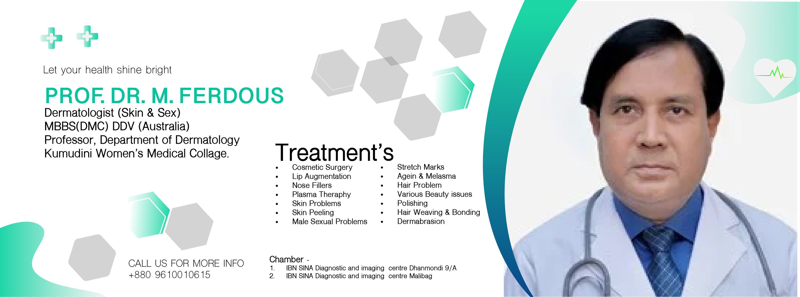 Prof. Dr. M. Ferdous specializes in a wide range of dermatological and sexual health treatments.